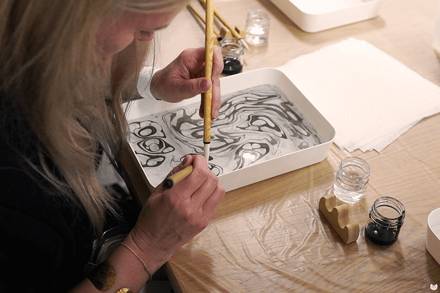 Piękny sensoryczny warsztat malowania tuszem na wodzie. Japońska technika wpisująca się w Japandi Slow Craft. Tworzymy obrazki, kartki, papier, który potem można oprawić lub wykorzystać do dalszych projektów.