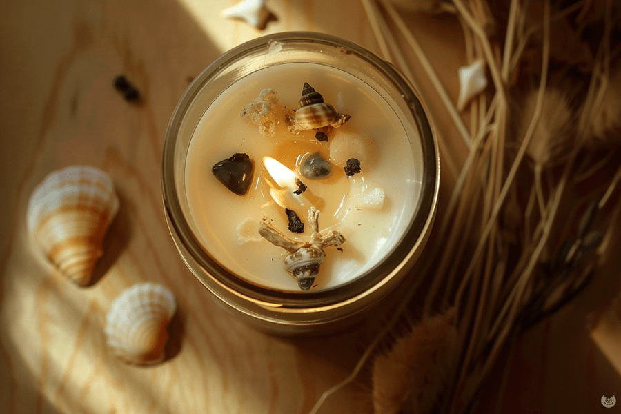 Jesień to tez czas wspomnień o minionym lecie. Jak zachować w pamięci te wszystkie miłe chwile? Można zrobić dziennik, album ze zdjęciami, zasuszyć zebrane kwiaty między stronami książki a kamyki i muszelki można wrzucić do świecy, np. sojowej - takiej, jak na zdjęciu. Te pamiątki pięknie podkreślą urok świecy i nie pozwolą zapomnieć o minionych wakacjach.