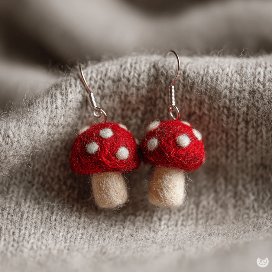 Filcowane na sucho kolczyki z boxa <B craft box RESET - Fall'n Wool by Caramel. Nasze boxy zawierają wiele ciekawych pobudzających kreatywność materiałów.