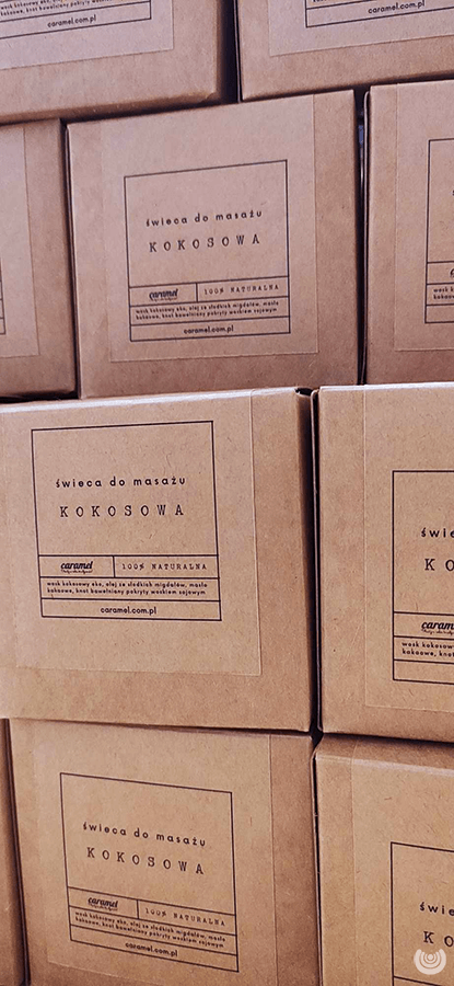 W Caramel tworzymy dla klientów dedykowane naturalne Gift Boxy, które oni rozdają swoim kontrahentom czy pracownikom. Tutaj świece do masażu - promo dla jednego z naszych klientów - Kamili, która prowadzi krąg dla twórczych kobiet.